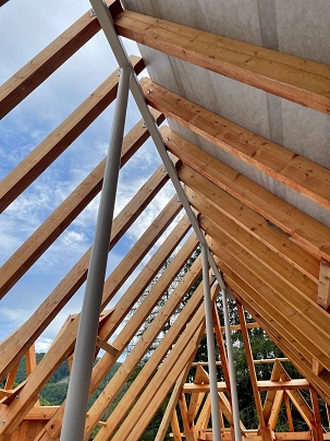 September 2022Dokončenie krovu západnej strechyDokončenie podchytenia základovDážď spomaľuje práce na streche