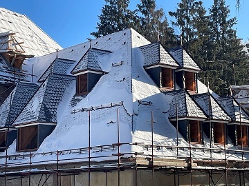 Február 2023Prvé vikiere východnej strechyPokračuje pokladanie bridliceSpadla 200-ročná lipa